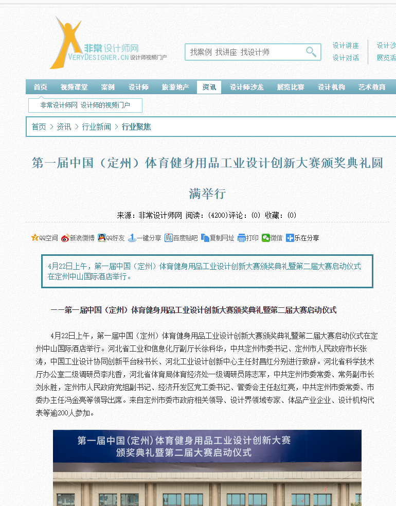 新华社、河北新闻联播、河北日报、河北新闻网、河北青年报、河北工人报、长城网、今日头条、新浪家居、中国网、凤凰网体育、设计邦、定州发布、定州电视台、定州日报、定州论坛等五十余家媒体对第一届中国(定州)体育健身用品工业设计创新大赛颁奖典礼暨第二届大赛启动仪式进行报道。